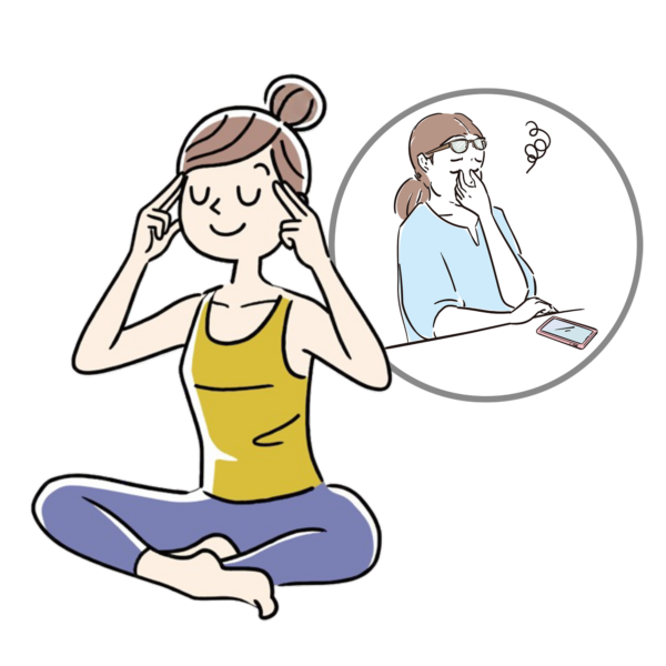 【眼精疲労解消のセルフマッサージ、肩首周辺、上半身への血行を促進するヨガポーズを実践】